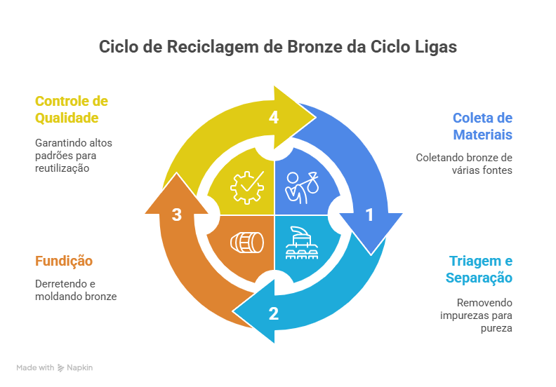 A reciclagem de bronze é um passo importante rumo à sustentabilidade ambiental e à economia circular. Como o bronze é uma liga metálica composta principalmente por cobre e estanho, sua extração demanda alto custo energético e impacto ambiental.